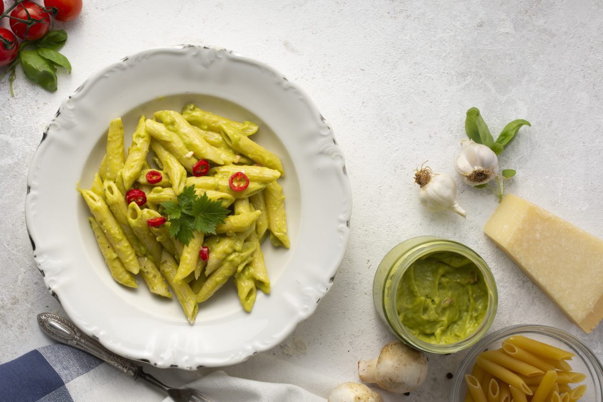 Ao considerar opções mais saudáveis, para aqueles que procuram opções mais saudáveis, as massas de grãos integrais são uma escolha excelente. Aqui, combine-as com um molho pesto fresco, repleto de manjericão, alho, pinhões e parmesão, para uma refeição leve, nutritiva e cheia de sabor.